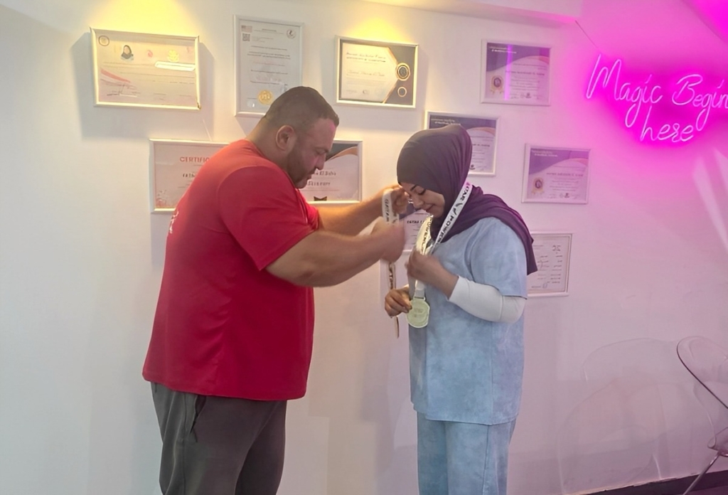 البطل خضر السن أهدى السيدة فاطمة البابافوزه ببطولة غرب آسيا برفع الأثقال